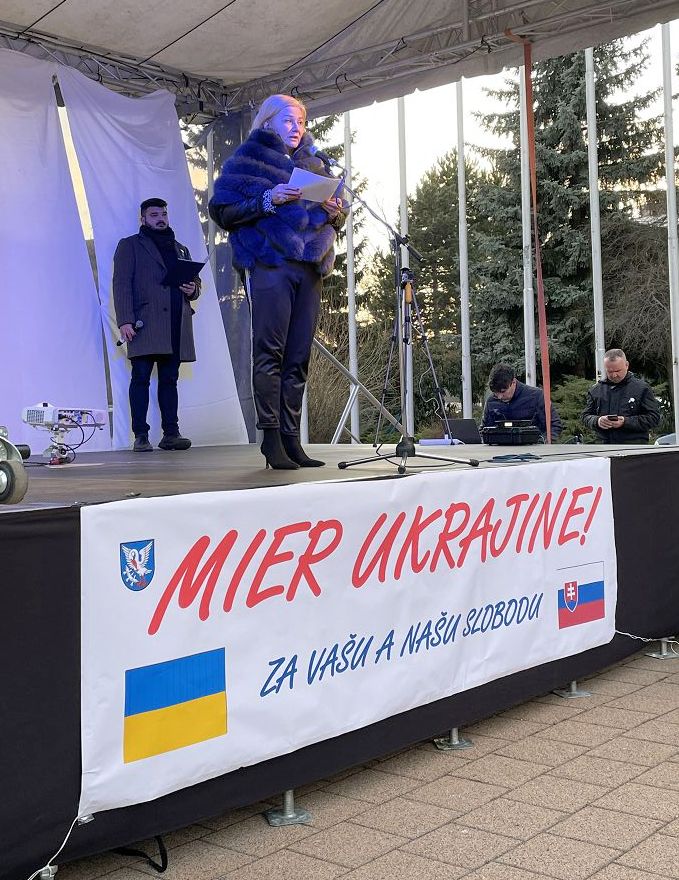 LUČENEC - Sláva Ukrajine, sláva hrdinom. Aj tieto slová zazneli na stredajšom (2. 3.) zhromaždení na lučenskom Námestí republiky. Organizátori Matej Gajdoš a Krasimir Damjanov chceli takto vyjadriť podporu východným susedom a odmietnuť vojnu.