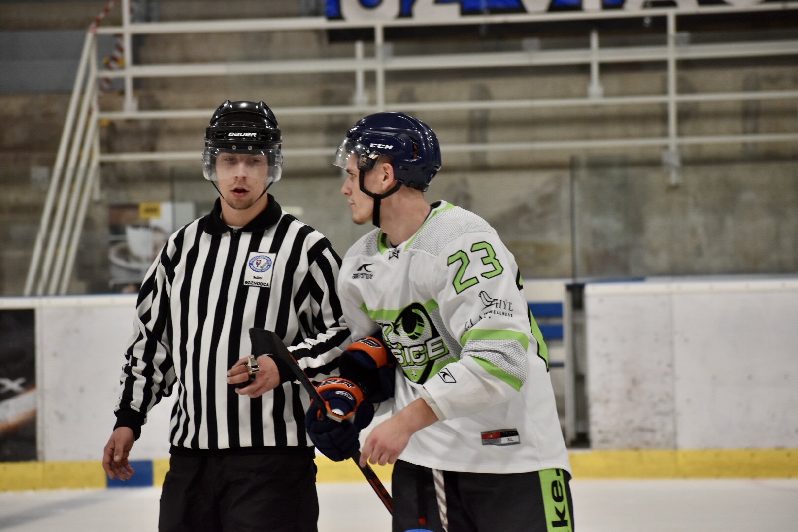 Už v tretej minúte sa podarilo hosťom otvoriť skóre zásluhou Faitha. Hostia sa zo začiatku javili ako energický tím, no domáci boli v hre na hokejkách lepší. Počas takmer celej prvej tretiny sa hralo zo strany na stranu, brankári oboch tímov si pripísali pekné zákroky. V 19. minúte zápasu sa domáci dotiahli na súpera výsledkovo a vďaka Spankovicovi vyrovnali na 1:1.