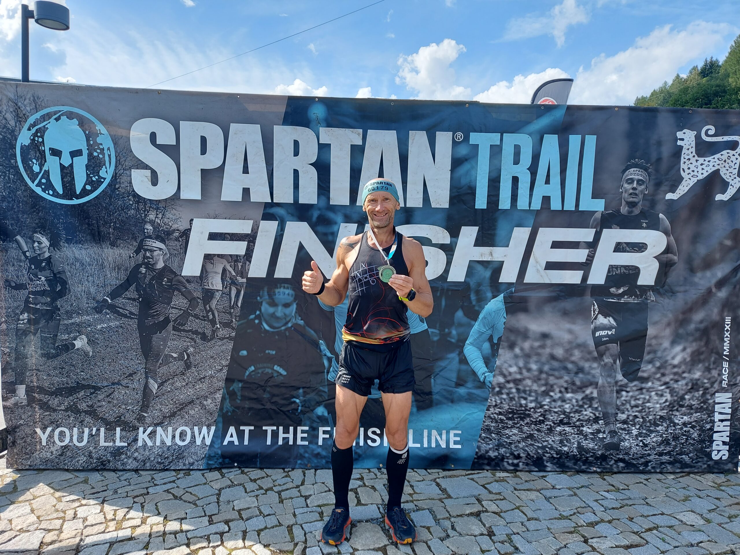 V rovnaký deň štartoval aj na preteku Spartan Trail. "Trať mala 11 kilometrov a prevýšenie 900 metrov, čo je na tak krátku trať pomerne dosť. Pôvodne som tam nemal štartovať, no keď sa bežkyňa Mirka Osuská rozhodla, že nebude štartovať, využil som možnosť registrácie a už o 13-tej som stál opäť na štarte. Kopce boli naozaj prudké, no nakoniec som opäť stál na bedni a získal som druhé miesto. Konečne som po medailovej ceremónii mohol sadnúť do auta s vynikajúcim pocitom," dodal Vrábeľ.