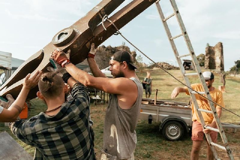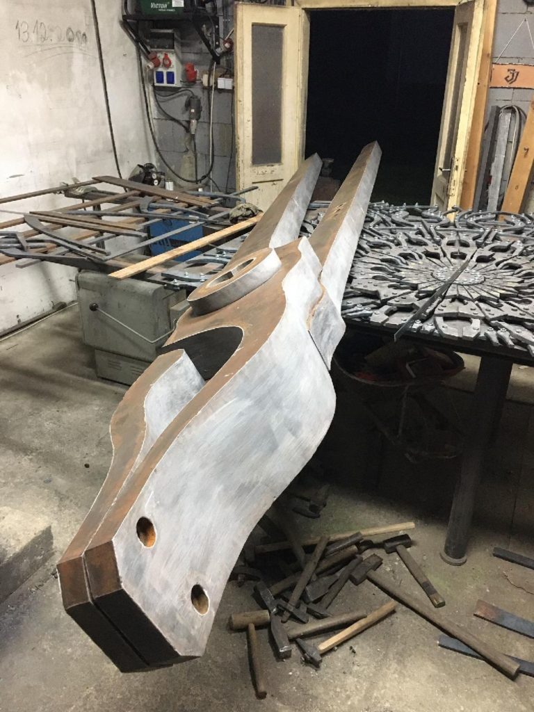 „Kliešte majú niečo cez päť metrov. Váha nie je veľká, sú z trochu hrubšieho plechu, čiže vážia tak do 200 kilogramov,“ povedal pre Rimava.sk Martin Jackuliak. „Z plného materiálu v takých rozmeroch by to bolo technicky náročné,“ doplnil s tým, že najskôr povyrezával šablóny, a potom jednotlivé časti pozváral dokopy tak, aby vyzerali ako plný materiál.