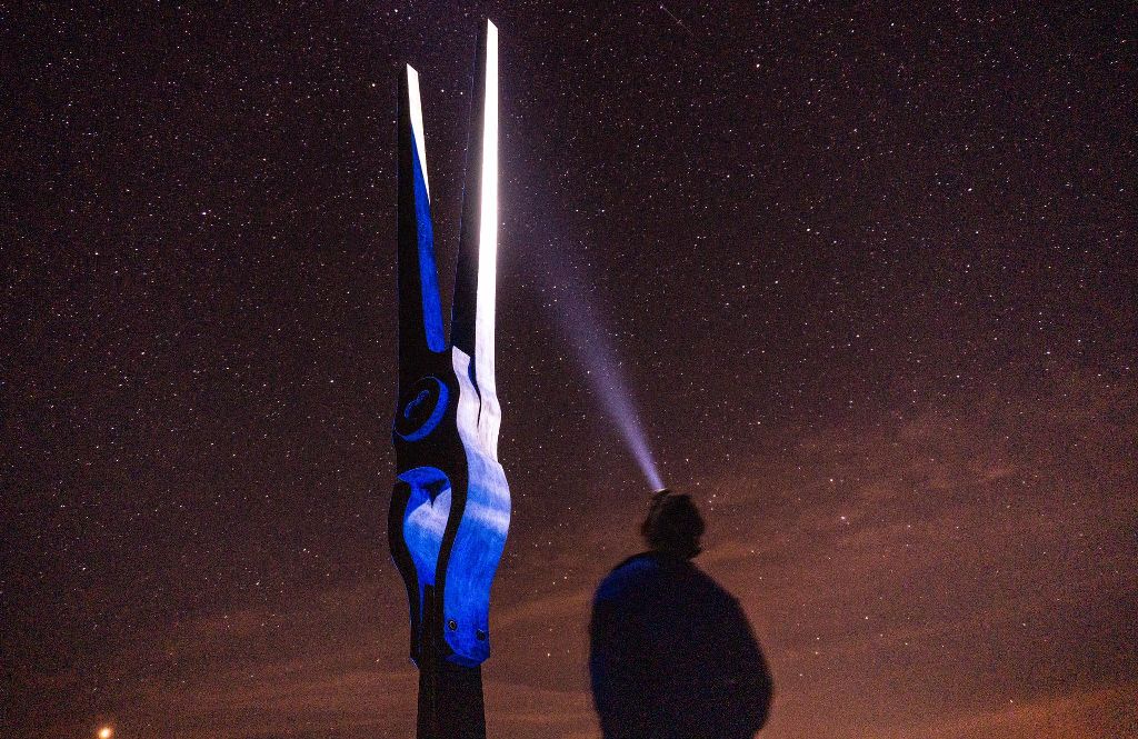 Minulý víkend kliešte poputovali na lúku na Kraskovo, kde ich s fotografmi a fotografkou nainštaloval a nafotil. „Fotili sme ich oproti nočnej oblohe, boli natreté fosforom, takže po tme svietili,“ objasnil umelecký kováč.