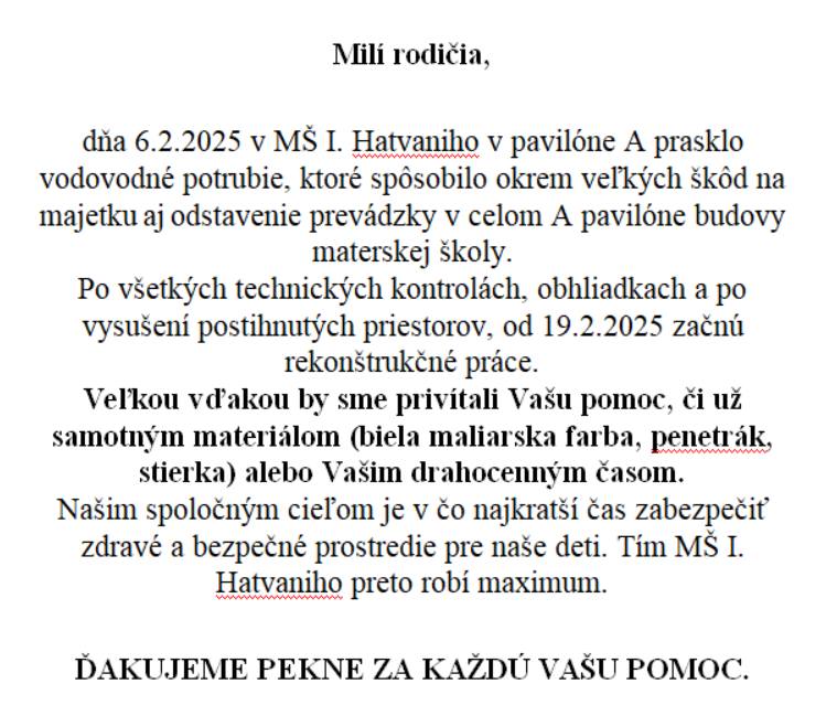 Naša redakcia sa pripája k tejto výzve a vyzýva všetkých dobrých ľudí – pomôžme deťom z MŠ Hatvaniho znovu sa smiať v ich vynovených priestoroch.