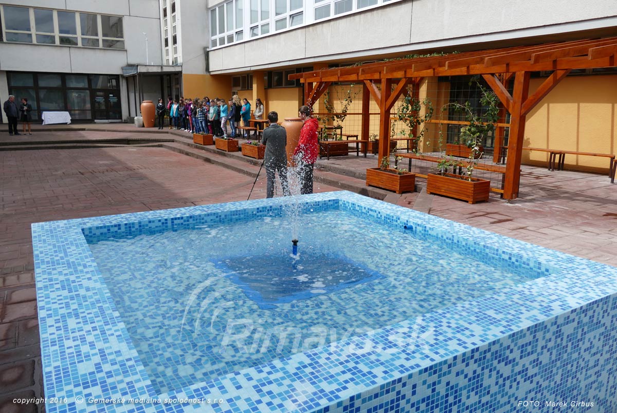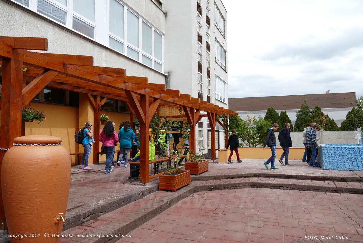 Na škole z tohto projektu postavili aj fontánku. „Je napojená na ďažďovú vodu, ktorá sa odvádza zo strechy a je privádzaná čerpadlom, ktorá cirkuluje,“ podotkol Černý. Okrem pergoly, nádob, fontánky či novovysadených stromčekov sú výstupom aj učebné osnovy, ktoré sa im podľa riaditeľa aj s pomocou ďalších učiteľov školy podarilo zaradiť do edukačného procesu. Ako ďalej priblížil, súčasťou projektu je aj meteorologická stanica. „Dá sa ňou merať sila vetra, slnečné žiarenie, zrážky a viac iných vecí. Sme veľmi radi, že žiaci budú mať opäť predstavu o tom, čo je príroda, čo sú živly a čo je meteorologická stanica,“ dodal.