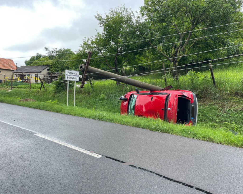 Osobné motorové vozidlo značky Ranault Capture malo zísť z neznámych príčin mimo vozovku, následne vrazilo do betónového stĺpa elektrického vedenia. Vozidlo sa po náraze prevrátilo a skončilo mimo štátnej cesty. Na mieste zasahovali tri kusy techniky a osem príslušníkov Hasičského a záchranného zboru (HaZZ).