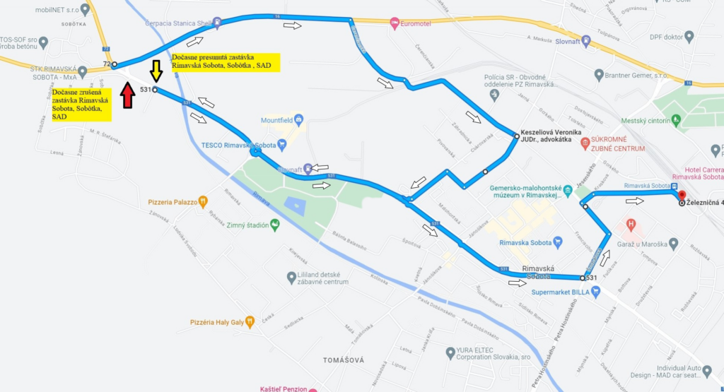 Na úplné uzavretie cesty II/531 – vjazd aj výjazd z Rimavskej Soboty, upozorňuje aj Slovenská autobusová doprava (SAD) Lučenec.