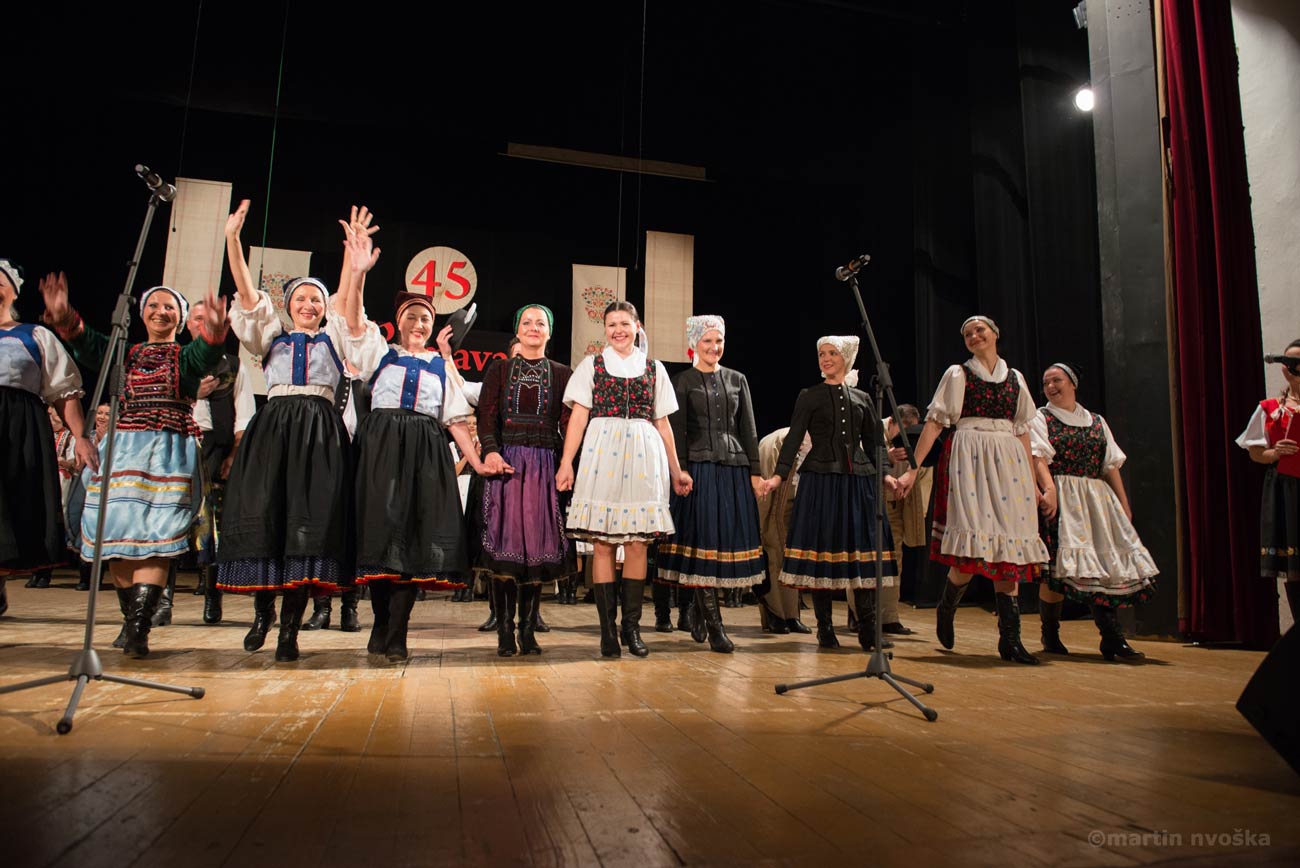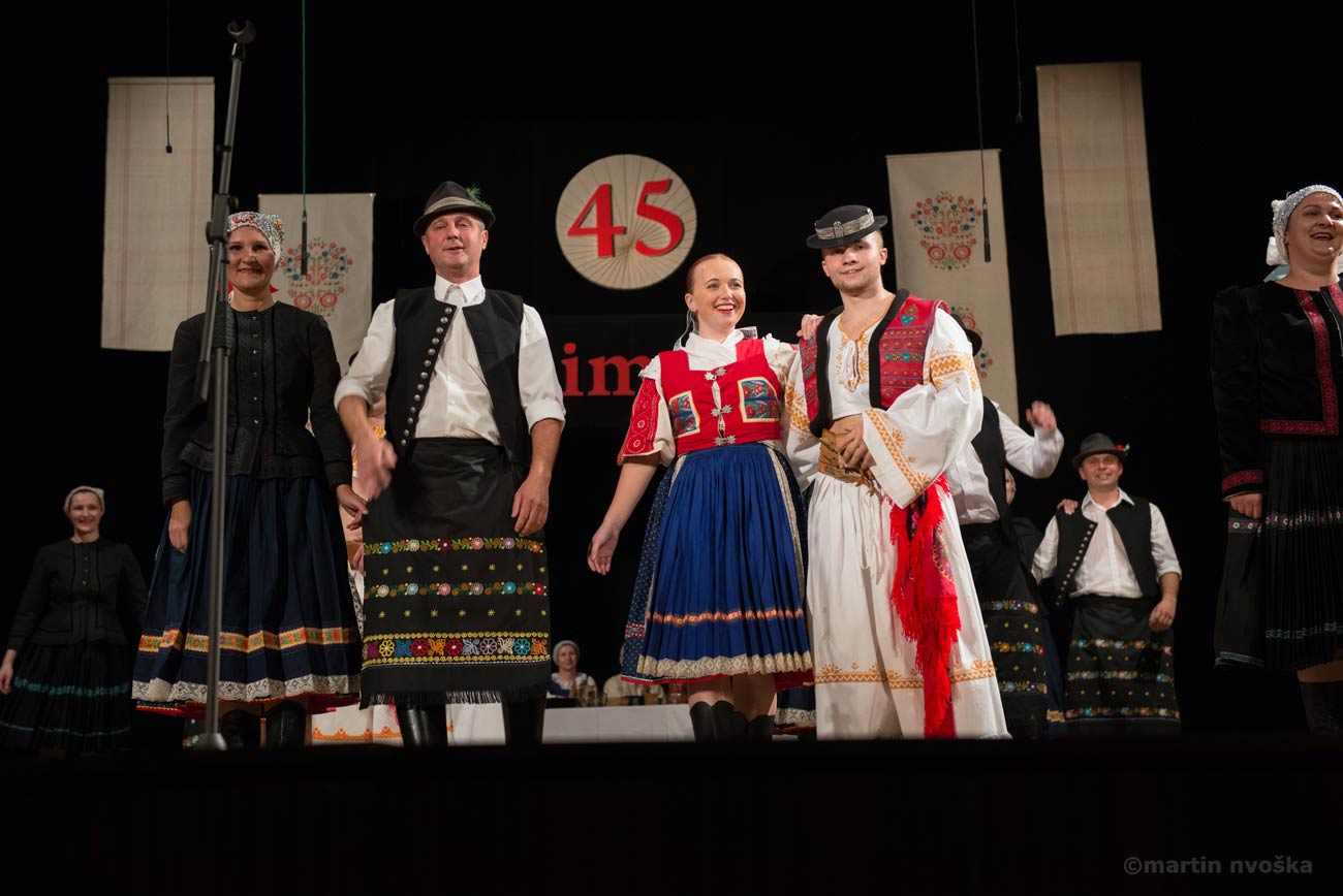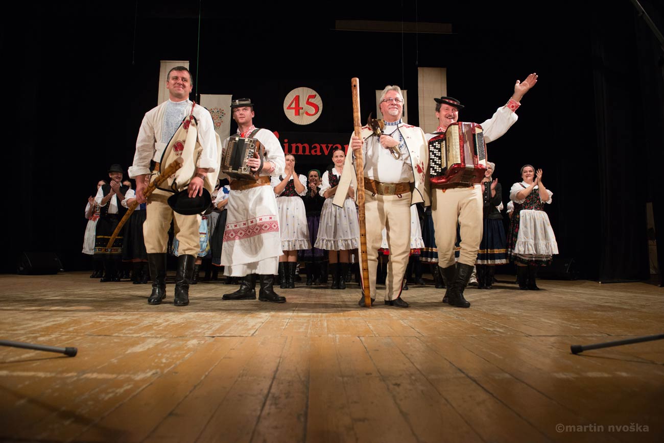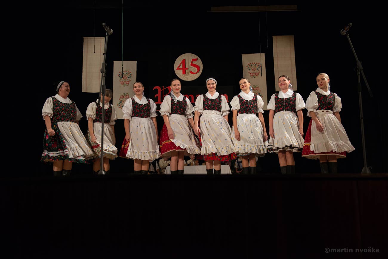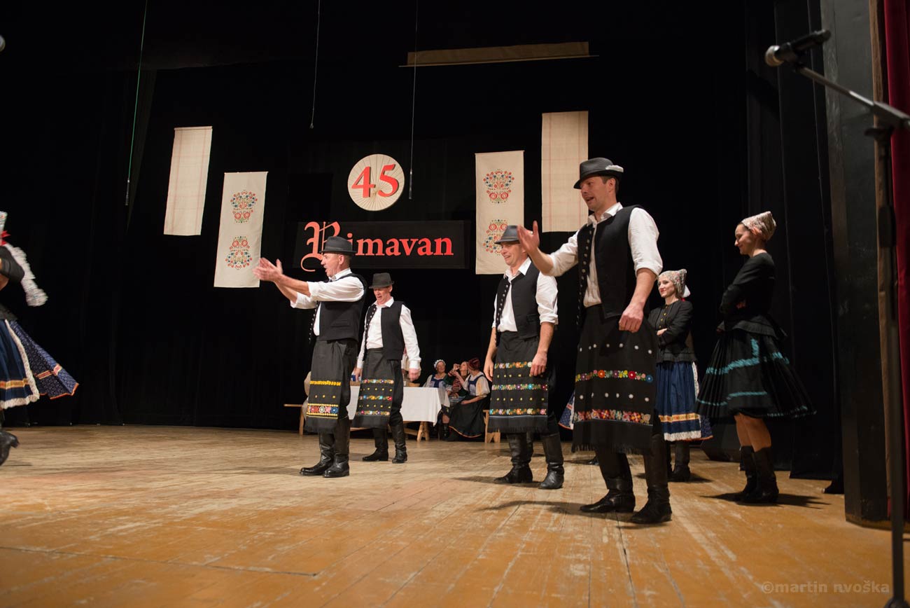 Galaprogram bol však aj o spomienkach, ktorým zub času nalepil známku s číslom 45. Ako Rimava.sk informovala poverená riaditeľka MsKS Milana Jutková, spomienkový úvod patril Štefanovi Balážovi, ktorý je umelecký vedúci a duša súboru. Na jeho spomienky nadviazal Dušan Manica, bývalý riaditeľ MsDO. „ Nezabudneme na Lacka Zákalického, ktorý prvý vyslovil myšlienku o vytvorení slovenského folklórneho súboru, na prvé pracovné stretnutie s Arpádom Hankom, Dušanom Manicom, Štefanom Balážom. Spomíname na prvý nábor do tanečnej a speváckej zložky, hľadanie sólistov inštrumentalistov...na prvú hudbu pod vedením Jána Berkiho z Rimavských Janoviec. Na začiatky vo veľkej sále Mestského domu osvety v Rimavskej Sobote. Do tímu folkloristov pribudla E. Hroncová, Vojto Klein-bývalý choreograf FS Gymnik v Bratislave. V roku 1969 vznikli choreografie Ladislava Zákalického Vyšívačky na Gemeri, Zbojník, Horehronská oblievačka.“