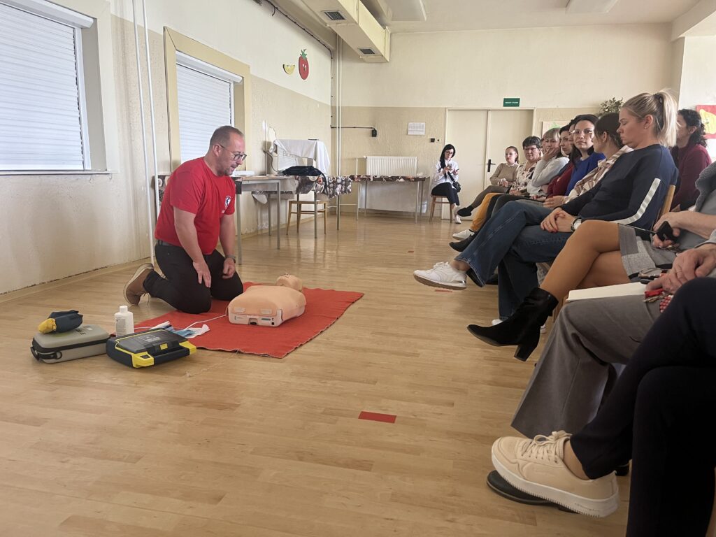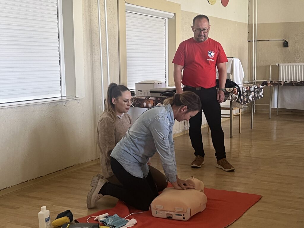 Po nainštalovaní prístroja absolvoval uplynulý štvrtok (25. apríla) personál základnej školy školenie, ako s defibrilátorom pracovať. Školením učiteľov sprevádzal Attila Gányovics, ktorý pracuje na pozícii lekár, špecialista na Stanici rýchlej zdravotnej pomoci v Rimavskej Sobote a zároveň je prezidentom Slovenskej spoločnosti urgentnej medicíny a medicíny katastrof a aj prezident Spolku lekárov v Rimavskej Sobote.