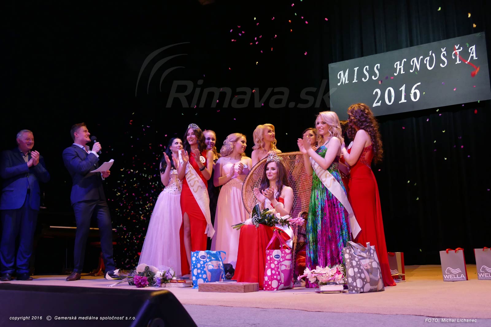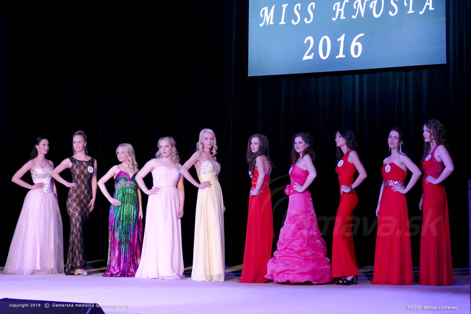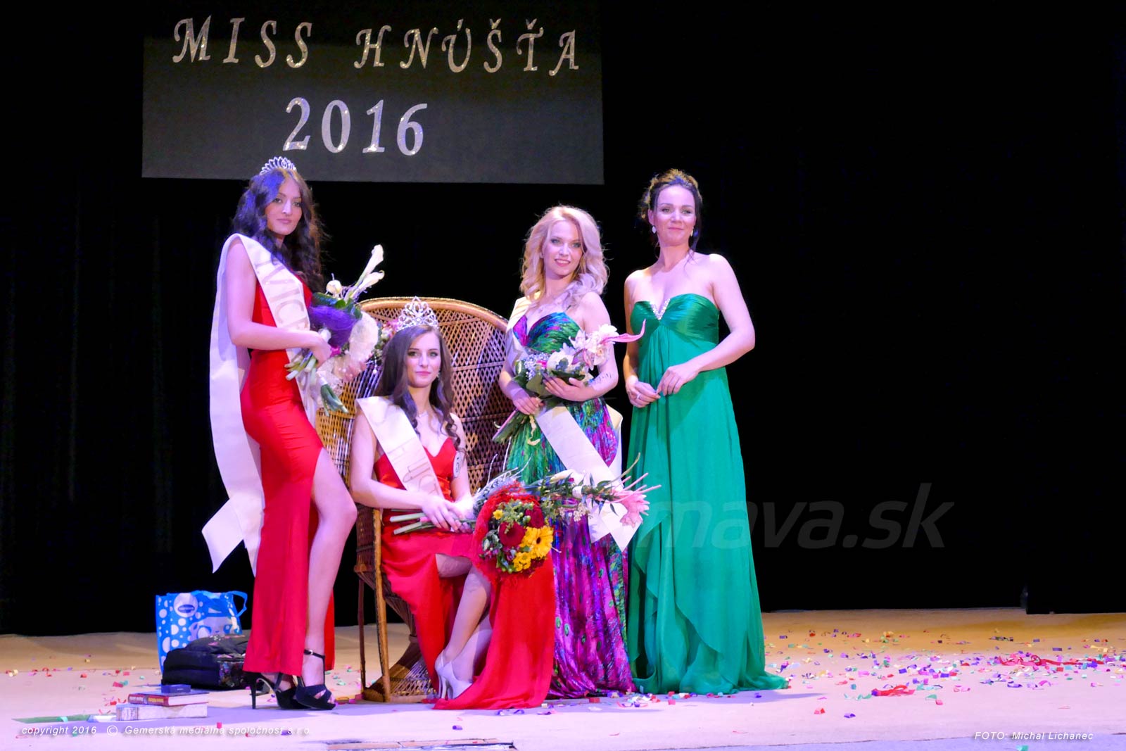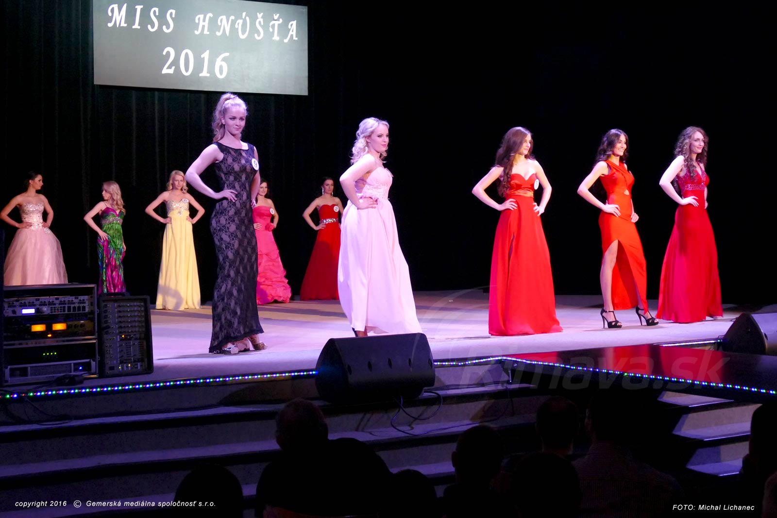 O titul Miss Hnúšťa 2016 zabojovali: 1. Magdaléna Kubaliaková, 2. Janka Jakabšicová, 3. Sabina Tomesová, 4. Alžbeta Kalmárová, 5. Silvia Szabóová, 6. Martina Balciarová, 7. Petra Farkašová, 8. Daniela Guzmová, 9. Ivana Masárová, 10. Gabriela Balciarová.