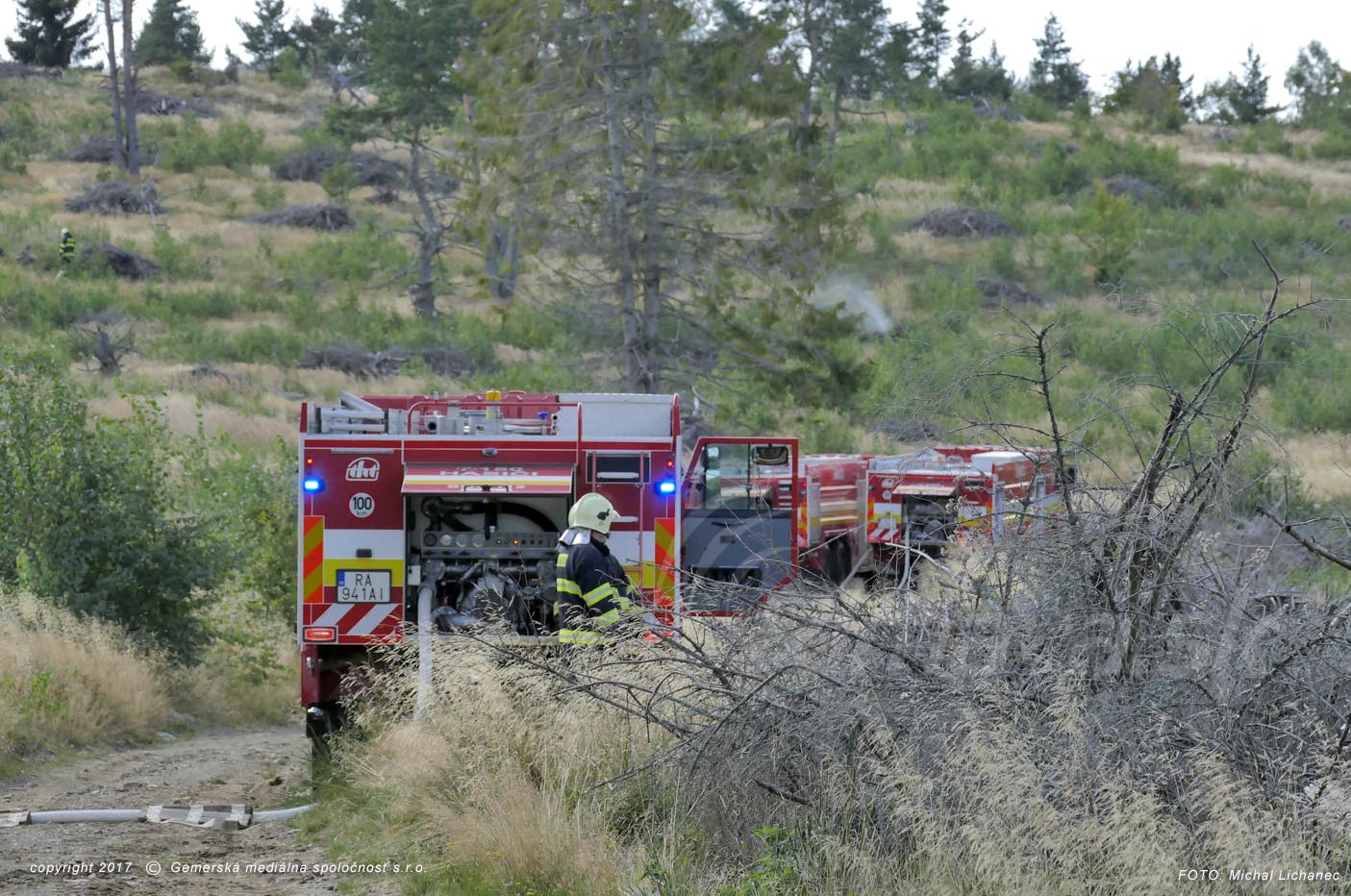 Na hranici okresov Rimavská Sobota a Revúca, na Tŕstí, kde pred tromi rokmi kalamita Žofia zničila celé hektáre lesov, trénovali profesionálni aj dobrovoľní hasiči. Približne tri hodiny tam v ťažko dostupnom teréne zasahovalo takmer 80 hasičov s viac ako dvadsiatimi kusmi techniky. Požiar nahlásil okoloidúci turista podľa súradníc GPS. Na miesto boli okolo deviatej hodiny vyslané cisterny, štvorkolky, ale aj veliteľský štábny automobil z Rimavskej Soboty. Ako pre Rimava.sk uviedol riaditeľ OR HaZZ Revúca Jozef Mikuda, požiar bol naplánovaný na rozlohe približne troch hektárov pod vrcholom Tŕstia, s predpokladanou likvidáciou troch hodín. Hasiči si tak preskúšali hlavne formy dopravy vody, lebo v tomto priestore je jej nedostatok. „Museli sme ju dovážať kyvadlovou dopravou,“ povedal riaditeľ Mikuda, podľa ktorého bola dôležitá koordinácia v úzkych lesných cestách s dôrazom na to, aby zasahujúci hasiči mali neustále vodu. „Hlavne vtedy je hasenie efektívne a účinné,“ dodal. Hasenie v takýchto podmienkach je náročné podľa hasičov na počet príslušníkov, ale aj na množstvo techniky. Cvičením podľa riaditeľa vyplynulo, že v prípade takéhoto požiaru je nevhnutné zabezpečiť ešte väčšie množstvo cisternovej techniky, ktorá by bola schopná dovážať vodu v potrebnom množstve a čase. „Tam, kde hasič nevôjde nohou, tak tam ten požar nie je zlikvidovaný celkom, do dôsledku,“ zdôraznil Mikuda.