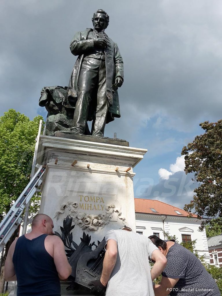 Bronzovú sochu M. Tompu premiestnili z jej pôvodného podstavca začiatkom apríla. Reštaurátorské práce tak trvali len pár týždňov. Ako sa uvádza na stránke mesta jej reštaurovanie firmou Rest & Ferrum bolo vo výške 5 tis. eur.