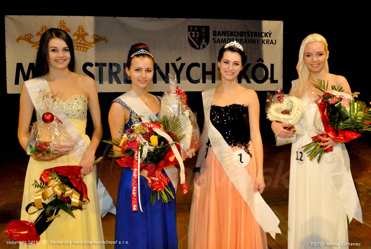 Po odovzdaní „sympatického titulu“ nasledovalo korunovanie druhej vicemiss stredných škôl, ktorou sa stala Veronika Bartošová zo Strednej odbornej školy v Tisovci, ktorá, ako prezradila, už má skúsenosti s modelingom. „Konkurencia bola veľká, ale som rada, že to takto dopadlo,“ povedala Veronika po súťaži. Titul prvej vicemiss si za sprievodu veľkých ovácií jej priaznivcov z hľadiska odniesla Karmen Čudaiová z Gymnázia Boženy Slančíkovej Timravy Lučenec, ktorú taktiež víťazstvo prekvapilo. „Myslím si však, že každý dúfa, že sa nejako umiestni,“ dodala. Po vyhlásení Miss Sympatia, prvej a druhej vicemiss bolo na rade vyhlásenie víťazky a udelenie titulu Miss stredných škôl 2015, ktorou sa stala študentka SOŠOS v Rimavskej Sobote Silvia Szabóová.