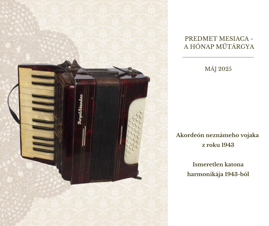 Predmetom mesiaca máj 2025 sa stal akordeón značky Royal Standart, ktorý svojho času vlastnil neznámy vojak pôsobiaci na východnom fronte.