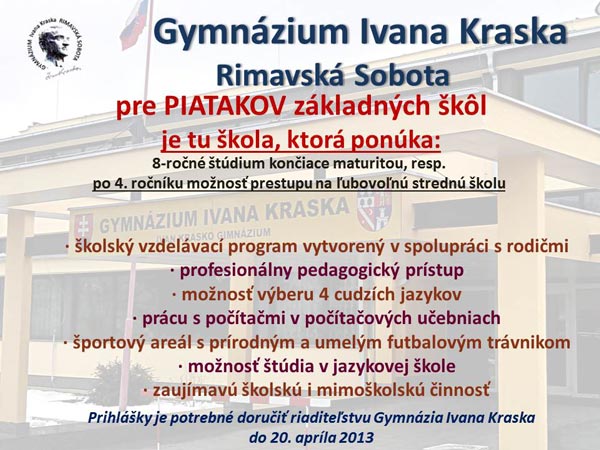 Zdroj: Gymnázium I. Kraska R. Sobota, reklamný článok