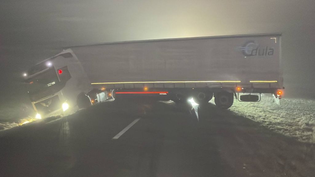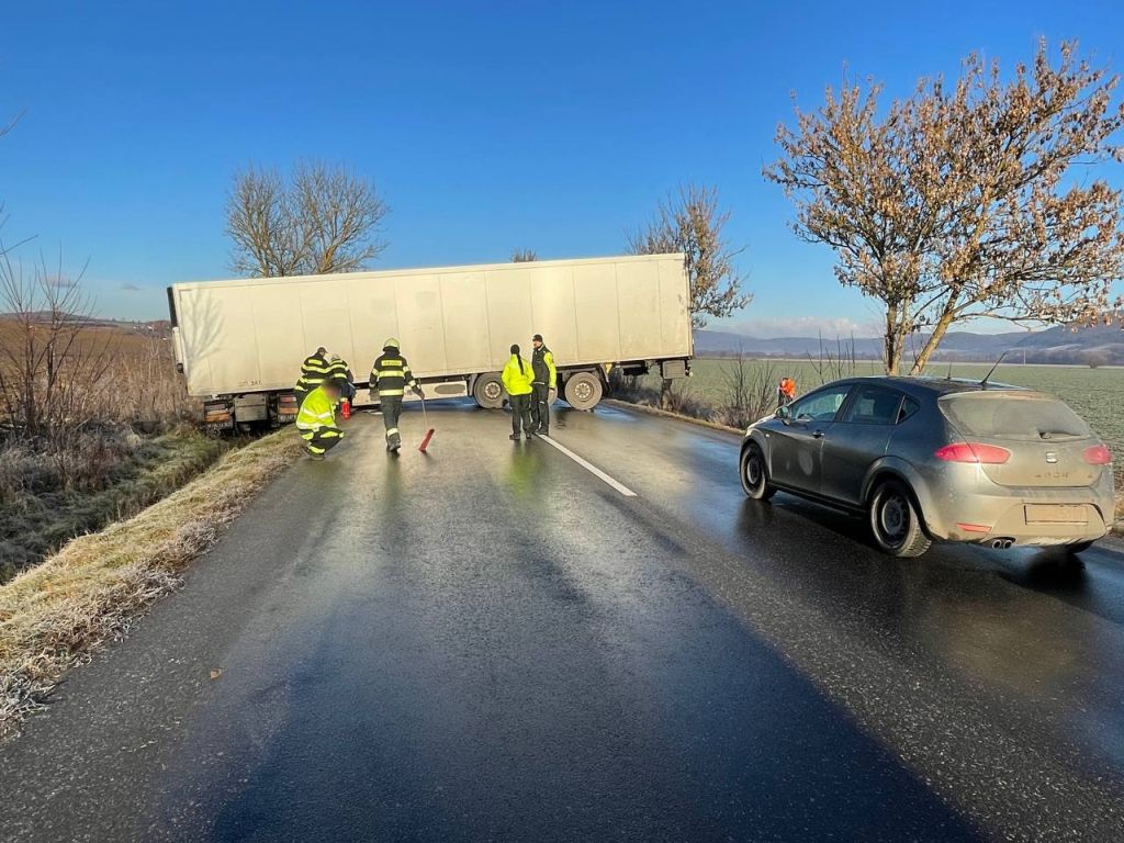 Dnes ráno sa rovnaká nehoda stala pri obci Martinová. Cestu tiež zablokoval kamión.