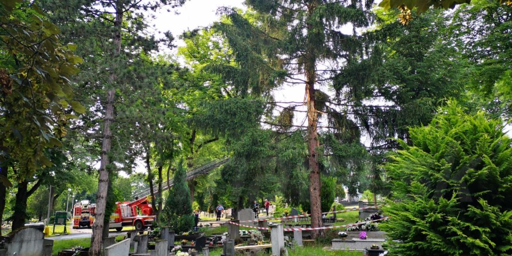 Profesionálnych hasičov privolali v pondelok aj na Kurinec, kde strom spadol na strechu rodinného domu. Hasiči tu aj pomocou výškovej plošiny strom pílili niekoľko hodín. Neskôr išli aj k stromu na cintoríne, do ktorého udrel blesk a rozštiepil ho. Na ťažko dostupnom mieste hasiči využili výškovú aj techniku z Lučenca. Zasahovali aj pri strhnutej streche na neďalekom Močiari, kde je individuálna výstavba rodinných domov.