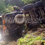 nehoda-hasici-lehotaZásah ako z akčného filmu zažili včera záchranári pri vyslobodzovaní vodiča nákladného auta, ktoré sa pri Lehote nad Rimavicou prevrátilo do rieky. Zakliesnený vodič ostal v kabíne a hrozilo, že sa utopí. Na mieste nehody zasahovali príslušníci hasičského a záchranného zboru (HaZZ) z Hnúšte, následne aj z Rimavskej Soboty. Medzi prvými bola na mieste posádka zdravotníkov. Ako Rimava.sk ďalej informoval Erik Piater z Krajského riaditeľstva HaZZ, vodič mal obidve dolné končatiny zakliesnené pod zdeformovanou prístrojovou doskou. Jeden z hasičov po vykonaní prieskumu ostal v kabíne a podľa Piatera mužovi držal hlavu nad hladinou vody. Hasiči za pomoci hydraulického vyslobodzovacieho zariadenia odstrihli volant a vodičovi postupne uvoľnili zakliesnené nohy.
