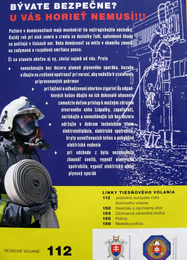 • volajte hasičov - tiesňová linka 150 alebo 112