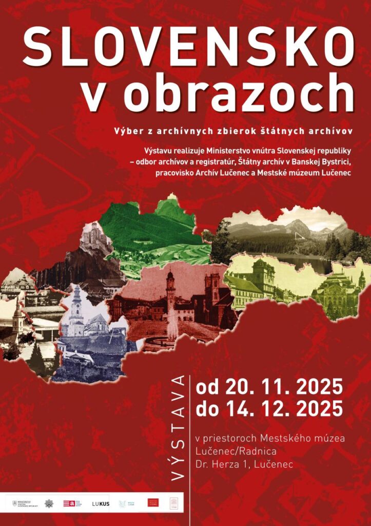 V priestoroch historickej radnice v Lučenci sa od 20. novembra do 14. decembra 2025 uskutoční výstava SLOVENSKO v obrazoch, ktorá návštevníkom predstaví unikátny výber z archívnych zbierok štátnych archívov. Podujatie, organizované odborom archívov a registratúr MV SR, vzniklo v spolupráci so Štátnym archívom v Banskej Bystrici a jeho pracoviskom Archív Lučenec.