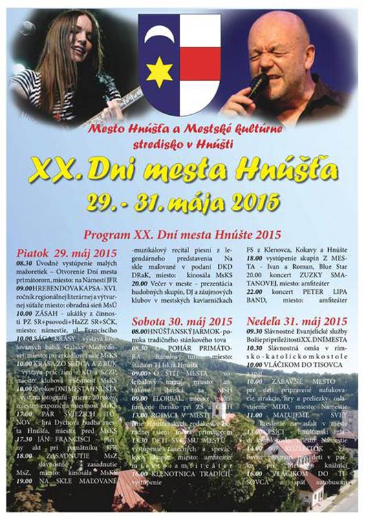 Sobota, 30. máj, začína hnúšťanským jarmokom. „Okrem tradičných jarmočných produktov budú mať zastúpenie aj remeselnícke výrobky. Tento rok sme pozvali výrobcov remeselníckych produktov, ktorí majú značku regionálneho produktu Gemer-Malohont ale aj tých, ktorí sa o ňu budú uchádzať,“ prezradila prednostka. Počas druhého dňa osláv sa budú konať rôzne športové podujatia, vystúpia aj spevácke a tanečné skupiny v programe Deti svojmu mestu. Večer opäť bude patriť hudbe. Okrem skupín z mesta vystúpi o 20-tej hodine speváčka Zuzana Smatanová a sobotňajší program ukončí koncert Petra Lipu a jeho kapely.