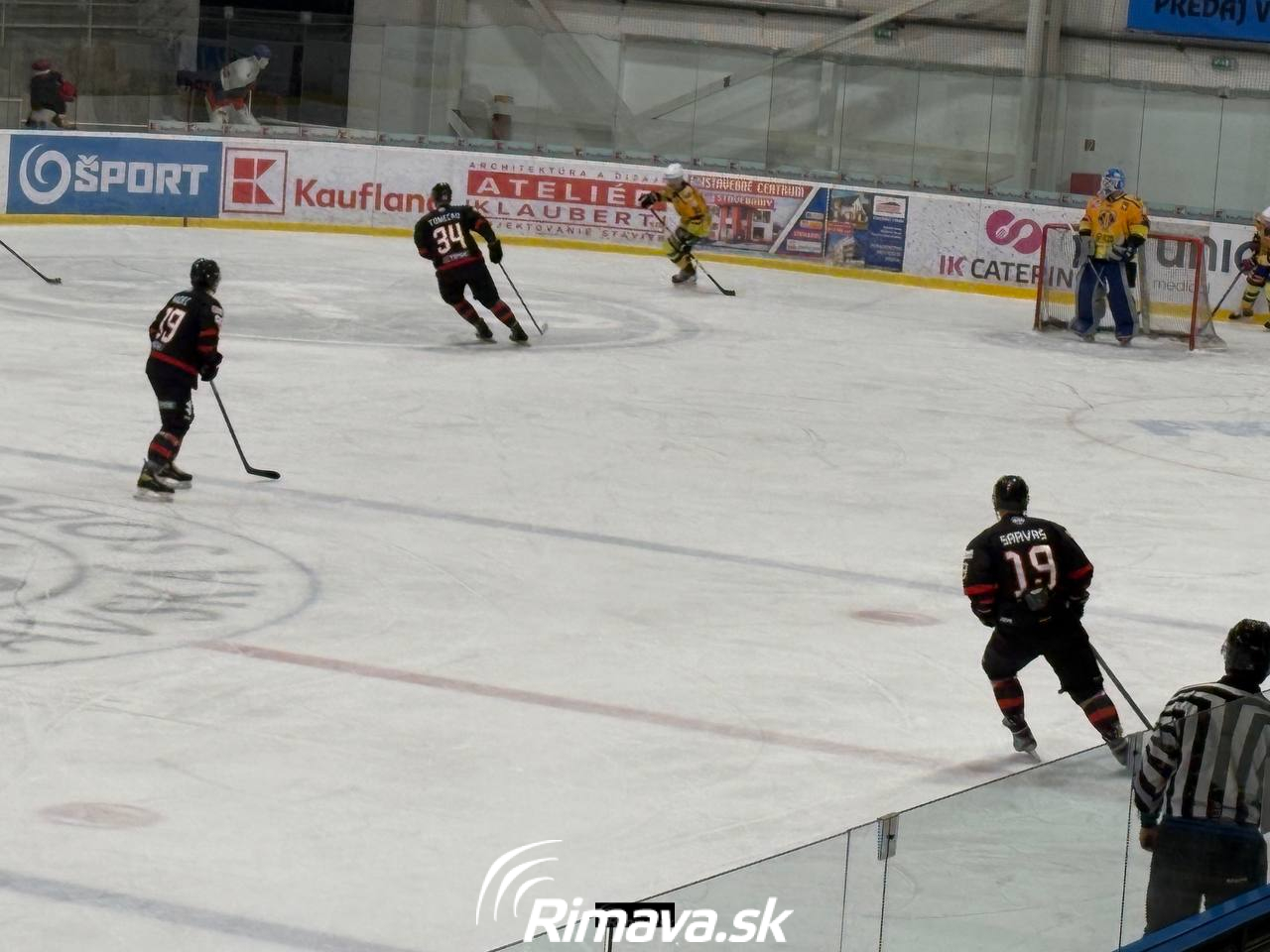 V sobotu večer (27. decembra) privítalo 633 divákov na zimnom štadióne v Rimavskej Sobote súboj dvoch ambicióznych tímov druhej najvyššej súťaže. Úvodná tretina priniesla vyrovnaný hokej bez gólov, no v druhej časti sa hostia z východu dostali do vedenia, keď v priebehu necelých dvoch minút skórovali Martin Palko a Gadel Khismatullin.