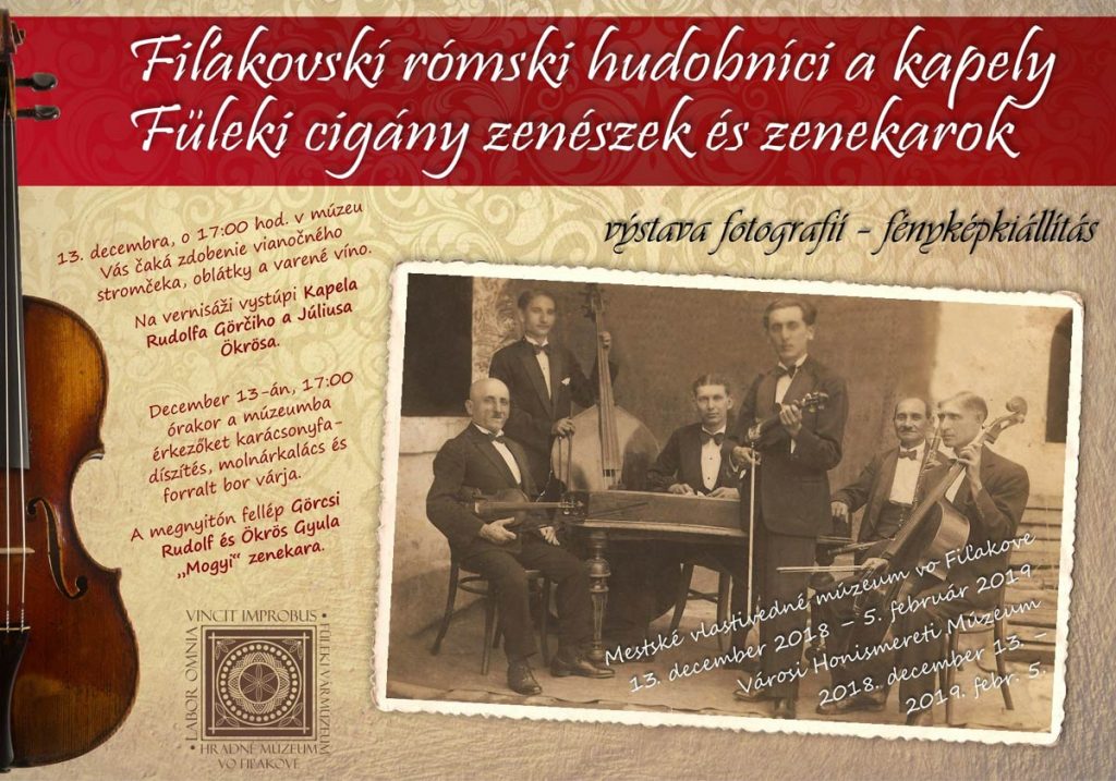 Výstava s názvom Fiľakovskí rómski hudobníci a kapely bude popri ďalších mestských podujatiach príjemným spestrením adventného obdobia, keďže počas vernisáže sa môžu návštevníci múzea opäť tešiť na vianočnú atmosféru. Deti čaká zdobenie stromčeka, a dospelí si môžu pochutnať na varenom víne a oblátkach. Vernisáž, ktorú bude sprevádzať vystúpenie Kapely Rudolfa Görčiho a Júliusa Ökrösa, sa uskutoční 13. decembra 2018, o 17:00 hodine v galérii Mestského vlastivedného múzea vo Fiľakove. Výstava potrvá do 5. februára 2019.