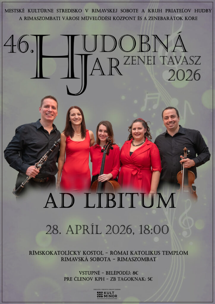Otvárací koncert sa uskutoční v utorok 28. apríla o 18:00 v priestoroch Rímskokatolíckeho kostola sv. Jána Krstiteľa. Publikum sa môže tešiť na vystúpenie kvinteta Ad Libitum, ktoré patrí medzi zaujímavé komorné zoskupenia pôsobiace v stredoeurópskom priestore.