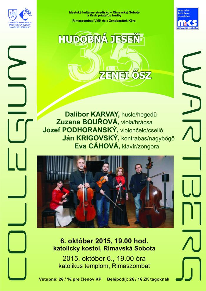 Možnosť kultúrneho zážitku v podobe koncertu vážnej hudby sa nám ponúkne už v utorok, 6. októbra, kedy rimavskosobotská hudobná jeseň privíta kvinteto Colleggia Wartberg. Na koncerte, ktorý sa uskutoční o 19-tej hodine v rímskokatolíckom kostole, budú účinkovať známe hudobné osobnosti: Dalibor Karvay / husle, Zuzana Bouřová / viola, Jozef Podhoranský / violončelo, Ján Krigovský / kontrabas a Eva Cáchová / klavír. „Sme veľmi radi, že si koncerty vážnej hudby u nás našli svoje publikum, že k nám zavítajú umelci svetového mena a my si vždy odnášame nezabudnuteľné zážitky a obohacujeme tým svojho ducha,“ uzavrela Čarnoká.