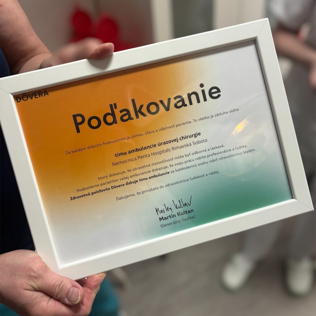 "Uznanie patrí celému tímu – lekárom aj zdravotným sestrám, ktorí každý deň dokazujú, že kvalitná zdravotná starostlivosť má aj ľudský rozmer," dodala Penta Hospitals na záver.
