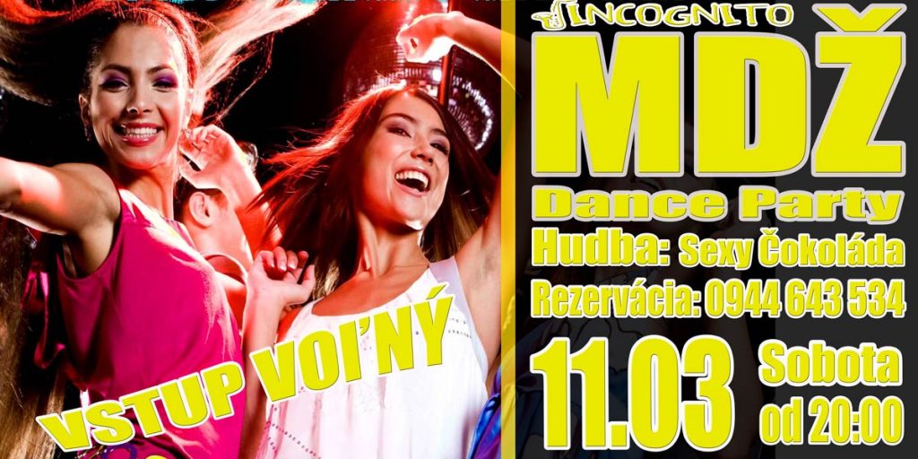 Začiatok marca patrí aj všetkým ženám na svete! A to treba osláviť. Najlepšie v rimavskosobotskom bare Incognito a ešte lepšie na tanečnej párty so živou hudbou. O oslavu Medzinárodného dňa žien sa postará MDŽ Dance Party a hudobný diktát nadiktuje známa maďarská formácia Sexy Čokoláda.