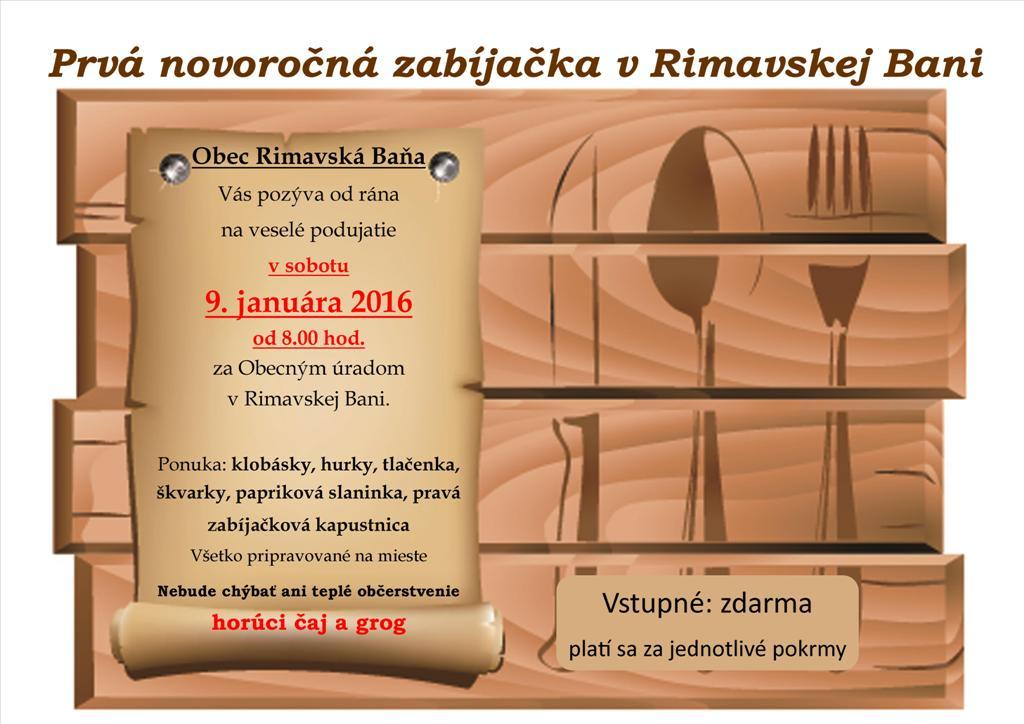 V sobotu, 9. januára od 8:00 hod. sa vzduchom v obci Rimavská Baňa budú niesť vône zabíjačkových dobrôt. Pochutnáte si na domácich klobásach, hurkách, tlačenkách, paprikovej slaninke a nebude chýbať ani pravá zabíjačková kapustnica. Na podujatí sa zahrejete teplým čajom ako aj grogom.
