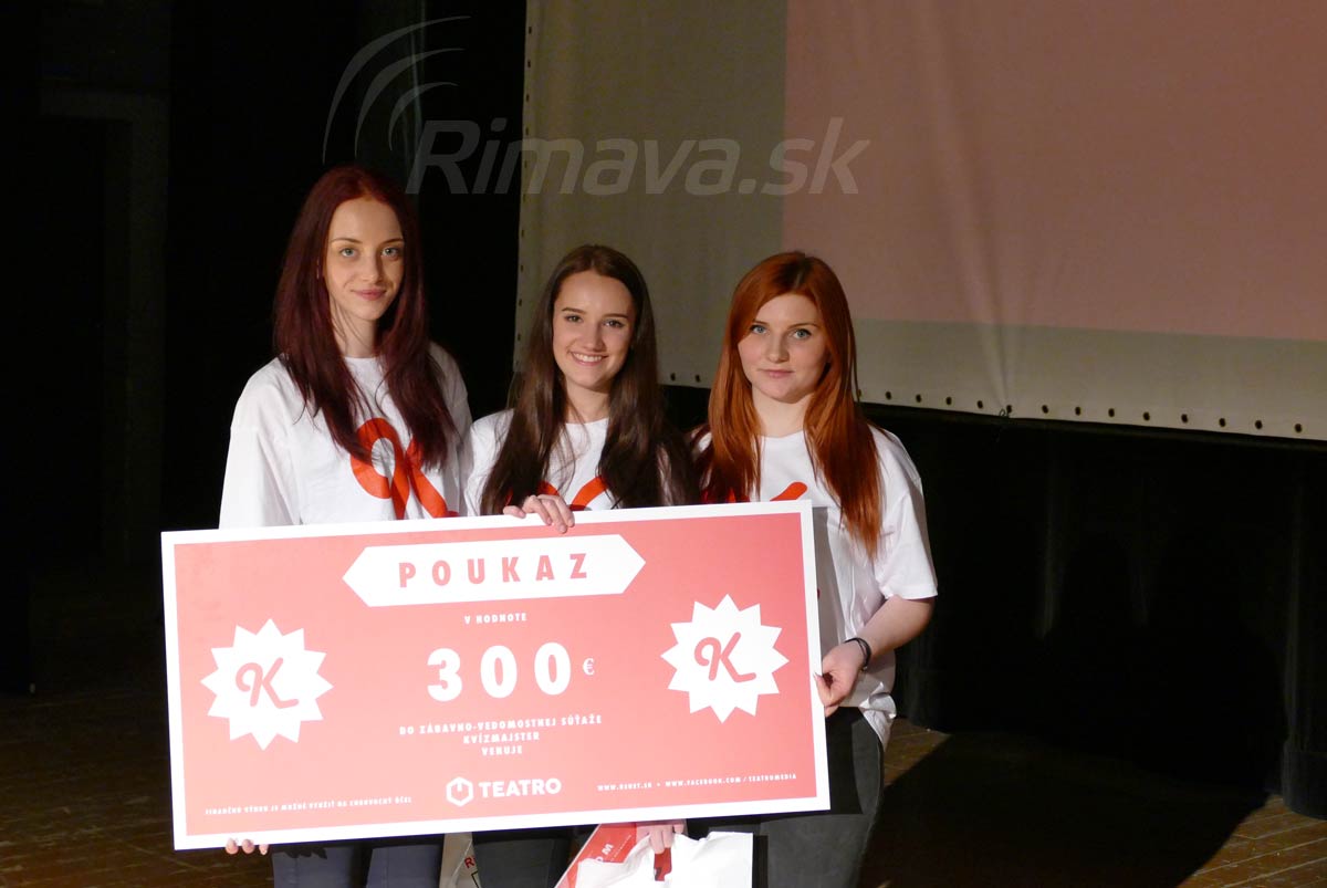 Kvízmajster, zábavno-vedomostná súťaž, po včerajších semifinálových, ale hlavne finálových kolách pozná svojich víťazov. S náročnými otázkami si najlepšie poradili tri maturantky z Gymnázia Pavla Jozefa Šafárika v Rožňave. Rimavská Sobota sa však môže pýšiť druhým miestom. Vybojovali ho študenti Gymnázia Ivana Kraska.