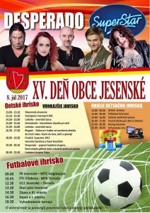 Už najbližší víkend vystúpia v Jesenskom na detskom ihrisku žiaci z miestnych škôl ale aj finalisti Superstar Veronika Danišová a Pavol Kovaliček. V jednej z najväčších obcí rimavskosobotského okresu tak oslávia v poradí už 15. ročník Dňa obce. Bohatý program je pripravený na sobotu, 8. júla, už od deviatej hodiny na futbalovom ihrisku. Okrem domácich mužstiev prijali pozvanie na zápasy od rána až do večera aj futbalisti zo Salgótarjánu, Fiľakova či Tornale. Chýbať nebude ani už tradičný zápas Starých pánov hrajúcich za Jesenské. „Tento rok chceme vyskúšať vonkajšie pódium, ktoré bude umiestnené na trávniku medzi telocvičňou a školskou jedálňou,“ povedal pre Rimava.sk starosta obce Gabriel Mihályi, podľa ktorého bude tribúna postavená tak, aby aj tí, ktorí sa občerstvujú, mohli pozerať priamo na program. Ako spomenul, do osláv sa snažia stále niečo nové zakomponovať a v bohatom programe by si mal každý nájsť to svoje. Keďže tento rok majú byť oslavy pod holým nebom, v prípade zlého počasia program presunú do Domu kultúry.