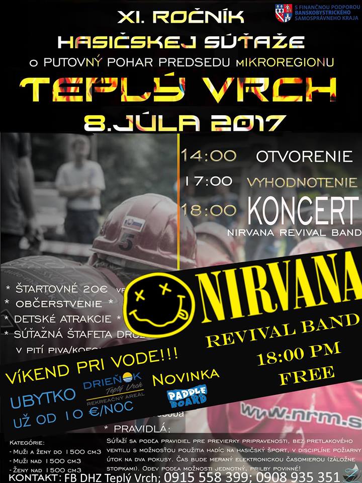 V ten istý deň (08.07.) bude na Teplom Vrchu Hasičská súťaž o putovný pohár predsedu Mikroregiónu Teplý Vrch, ktorá vyvrcholí koncertom skupiny Nirvana Revival Band. V obci Orávka privítajú volejbalové družstvá na 4. ročníku amatérskeho turnaja, na ktorom zahrá aj kapela Before the Zero day. V jednej z najväčších obcí okresu, v Jesenskom, oslávia v tú istú sobotu 15. ročník Dňa obce. Bohatý program osláv nájdete v článku: Na oslavách Dňa obce vystúpia miestni žiaci aj finalisti Superstar.