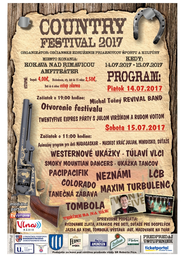 Country festival v Kokave nad Rimavicou, ktorý je zameraný na country, bluegrass, folk, akustickú hudbu a príbuzné žánre, otvára svoje brány v piatok 14. júla. Najväčším lákadlom prvého dňa je večerná párty s Julom Viršíkom z rádia Expres. Druhý deň (15.07.) bude patriť viacerým interpretom vrátane Maxim Turbulenc z Českej republiky a sprievodnému programu, v ktorom na návštevníkov čakajú westernové ukážky, ryžovanie zlata, jazda na koni a ďalšie atrakcie.