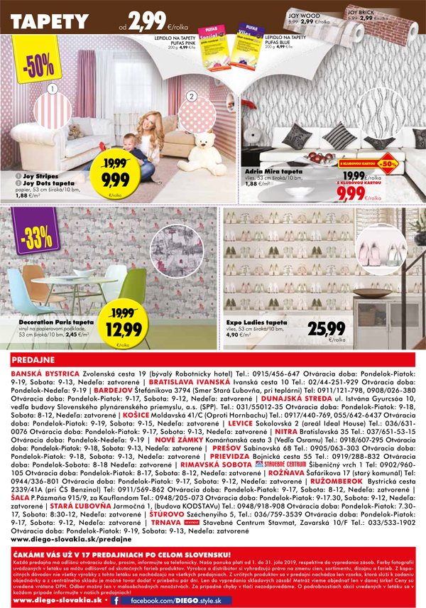 Júlová ponuka predajne DIEGO v Rimavskej Sobote vám uľahčí letné skrášlenie, či rekonštrukciu bytu, domu. Kvalitné laminátové podlahy v rôznych farebných prevedeniach môžete teraz dostať za bomba ceny. Zaujímavé 33 - 50% zľavy vás čakajú aj pri vybraných kobercoch, závesoch, či záclonách.