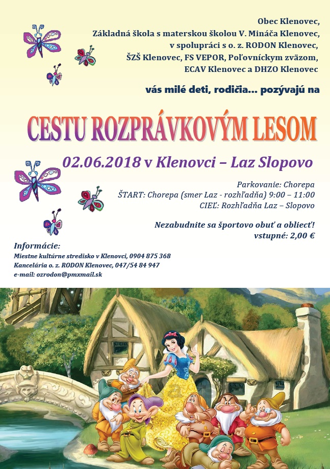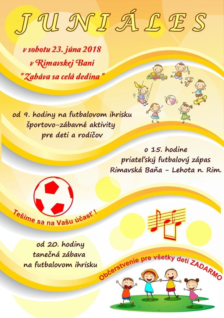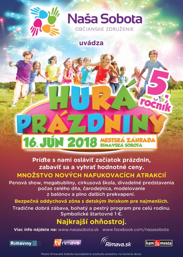 Pri príležitosti Medzinárodného dňa detí (1.6.) je v Klenovci naplánovaná Cesta rozprávkovým lesom. Tohtoročnou novinkou je trasa, ktorá povedie zo sedla Chorepa až k rozhľadni na Laze Slopovo. Vydať sa na ňu môžete už v sobotu, 2. júna. Tento deň bude plný športu a zábavy aj v obci Lehota nad Rimavicou, kde na najmenších okrem iného čakajú kolotoče, rytieri či jazda na koňoch. O dva týždne na to (16.6.) sa už budú v Rimavskej Sobote vítať blížiace sa prázdniny. Mestskú záhradu zaplnia nafukovacie atrakcie, penová show, megabubliny a cirkusová škola. Tešiť sa môžete aj na divadelné predstavenia, rôzne súťaže a ďalšie prekvapenia. Organizátori nesklamali a ani piaty ročník úspešného podujatia neuzavrie nič iné ako najkrajší ohňostroj. Deťom bude patriť aj dopoludnie predposlednej soboty v mesiaci (23.6.) v obci Rimavská Baňa. Za názvom „Juniáles - Zabáva sa celá dedina“ sa skrývajú rôzne športovo-zábavné aktivity. Program pre deti a rodičov popoludní doplní priateľský futbalový zápas a vo večerných hodinách tanečná zábava.