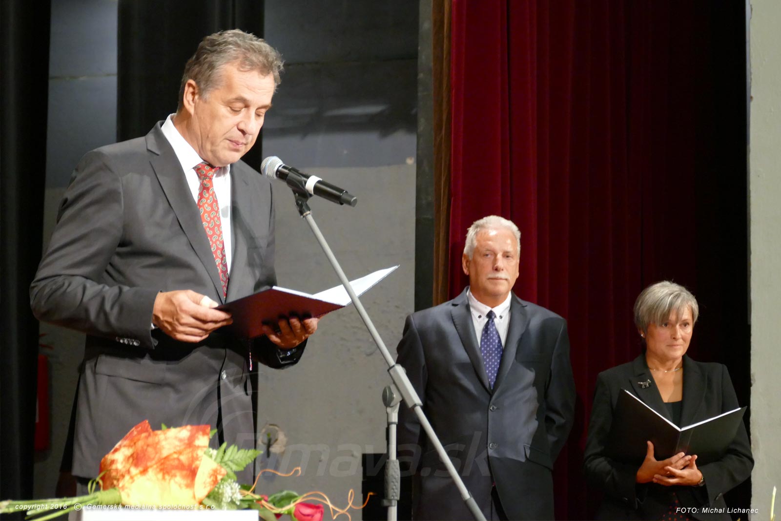 Podpredseda Združenia miest a obcí Slovenska Jozef Dvonč, v pozadí predseda Združenia Miest a obcí Gemera a Malohontu Peter Mináč a riaditeľka Domu kultúry Milana Jutková.