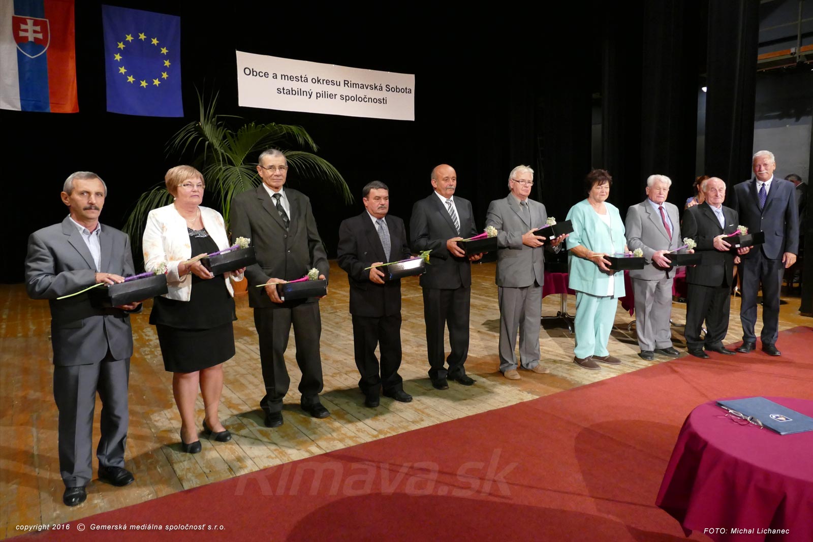 Ocenili aj dlhoročných predstaviteľov samosprávy - Petra Mináča z Tisovca, Štefana Zagyiho z Gemerských Dechtárov, Kornéliu Nosáľovú z Rimavskej Soboty, Gabriela Mihályiho z Jesenského, Františka Szűcsa z Rimavskej Soboty, Mariana Habovčíka z obce Lenka, Jána Rákošiho z Lenartoviec, Janku Ďurišovú z Rimavských Zalužian, Júliusa Molnára z obce Tachty, Jaroslava Bendu z Babinca, Nándora Kisfaludyho zo Širkoviec, Jozefa Hunyáka z Hajnáčky, Jána Lichanca z Orávky, Irenu Hanobíkovú z obce Abovce, Ondreja Knechtu z Hrachova.