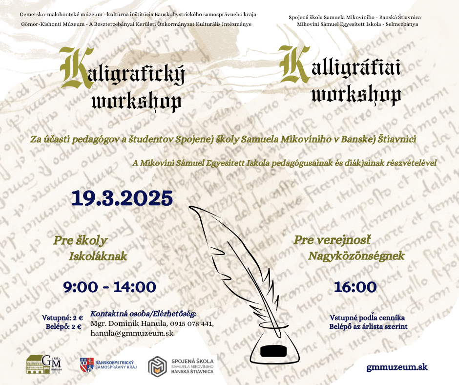 Gemersko-malohontské múzeum v Rimavskej Sobote organizuje jedinečný kaligrafický workshop, ktorý sa uskutoční 19. marca ako sprievodné podujatie k výstave Tajomstvá reštaurovania.