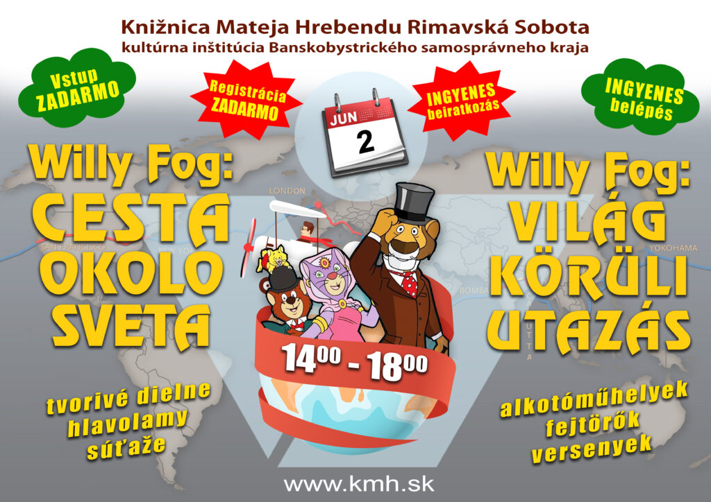 Program pre deti bude pokračovať aj v pondelok 2. júna, keď Knižnica Mateja Hrebendu ponúkne deťom dobrodružnú cestu okolo sveta s legendárnym cestovateľom Willy Fogom. Od 14:00 do 18:00 sa deti zábavnou formou zoznámia s rôznymi krajinami, kultúrami, zvykmi a jedlami. Pripravené sú tvorivé dielne, interaktívne hry, kvízy a prezentačné stanice.