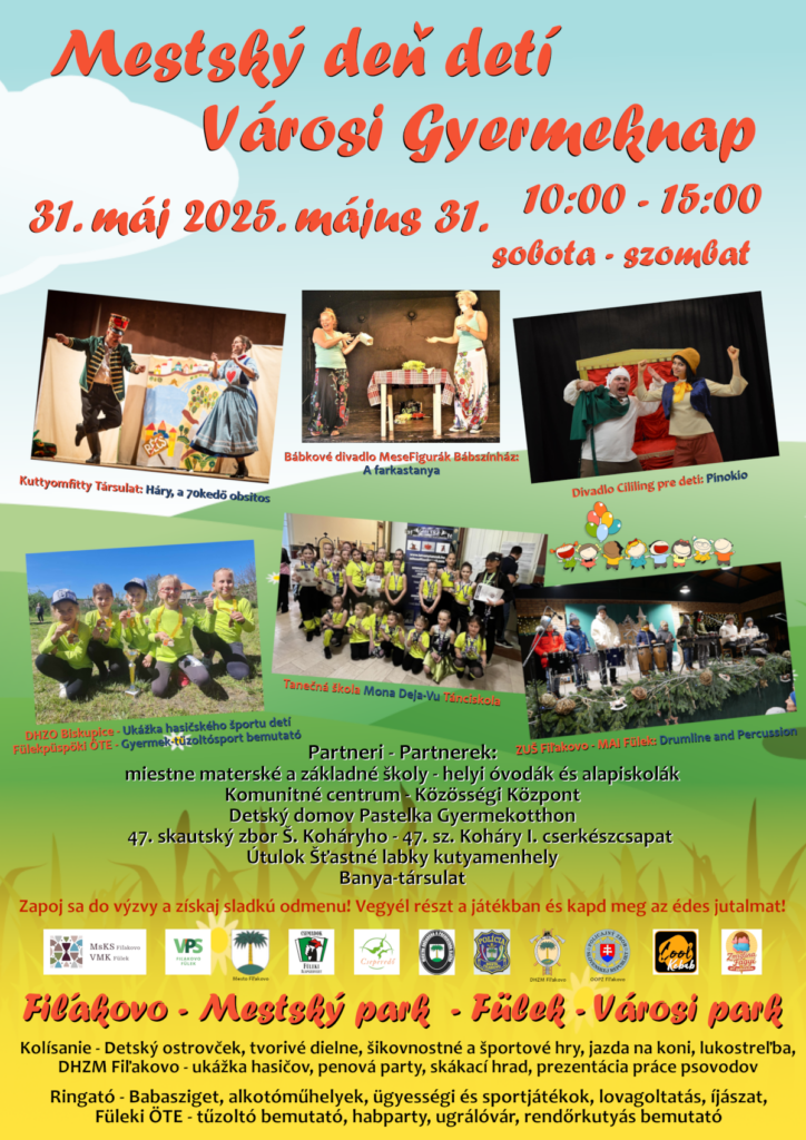 V sobotu 31. mája sa vo Fiľakove uskutoční tradičný Mestský deň detí, ktorý ponúkne pestrý scénický program v mestskom parku. Deň otvorí vystúpenie tanečníčok Tanečnej školy Mona Deja-Vu a pokračovať bude divadelným predstavením súboru Kuttyomfitty Társulat v maďarskom jazyku. Na športovom ihrisku si svoje schopnosti predvedie detský tím Dobrovoľného hasičského zboru z Biskupíc v rámci ukážky hasičského športu.