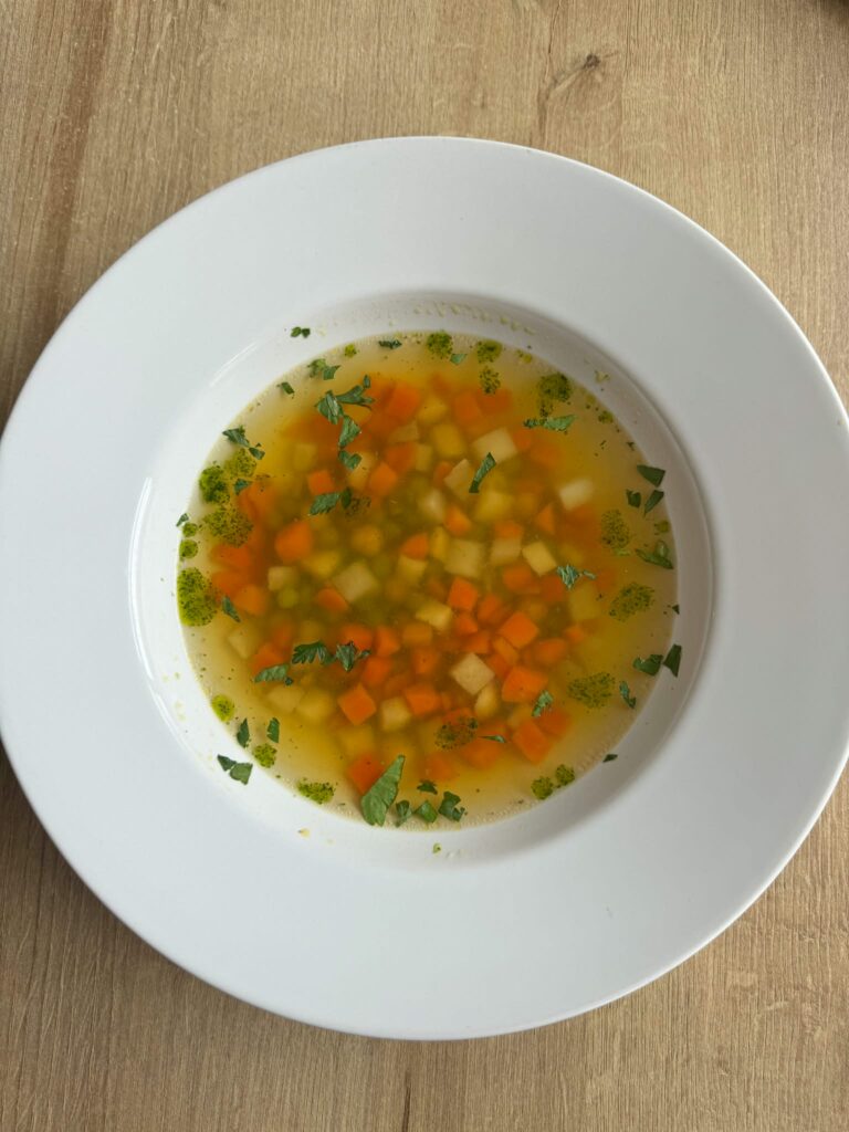 Park Restaurant ponúka vyvážené menu pre každého. Začať môžete kuracím vývarom alebo paradajkovou krémovou polievkou s mozzarellou.