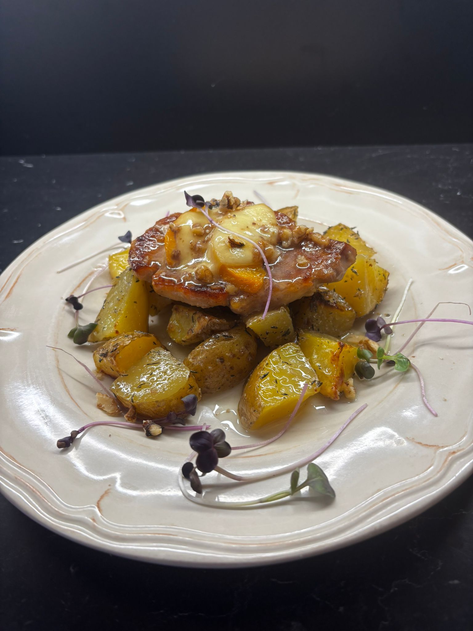V Monarchii dnes potešia najmä milovníkov tradičných chutí s moderným nádychom. Na výber je napríklad sýty bavorský držkový perkelt s kysnutými knedľami, ale aj zaujímavý bravčový rezeň s mozzarellou, broskyňami a orechami.
