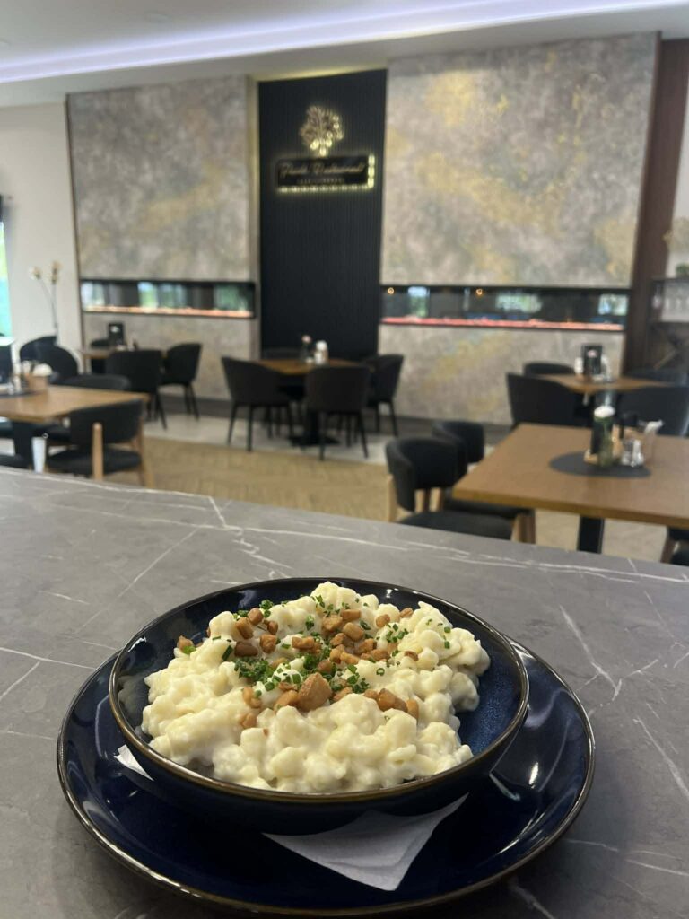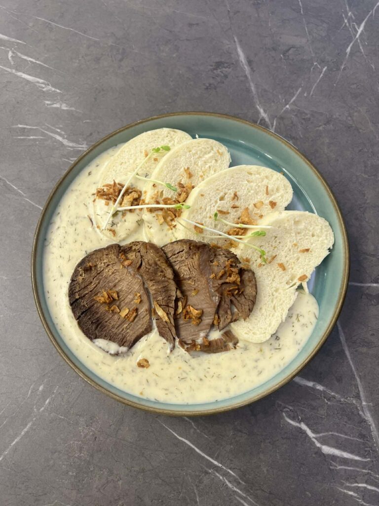 Z hlavných jedál nechýba klasika ako hovädzie s kôprovou omáčkou a domácimi knedľami či obľúbené bryndzové halušky. Sladkou bodkou môžu byť dukátové buchtičky s vanilkovým pudingom.