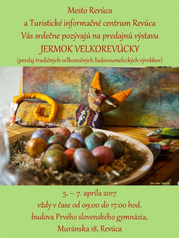 Rovnako aj na začiatku prvého aprílového týždňa si užijete relax a načerpáte energiu na blížiace sa veľkonočné sviatky. V utorok, 4. apríla, sa v rimavskosobotskom Dome kultúry predstaví maďarská hudobná legenda Zorán Sztevanovity. V stredu, 5. apríla, začne v Revúcej Jermok velkorevúcky, ktorý potrvá do piatku, 7. apríla. Na výstave v budove Prvého slovenského gymnázia si budete môcť zakúpiť tradičné veľkonočné ľudovoumelecké výrobky. Štvrtok, 6. apríla, bude v Hnúšti patriť divadelnému predstaveniu Chlieb s maslom.