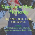 Vynášať Zimu Marienku budú aj v obci Striežovce, a to v nedeľu, 2. apríla. A ako to bude prebiehať? Ako uvádzajú organizátori slamená bába sa na hornom konci dediny oblečie do šiat, nastokne sa na hrubý štiap a nesie sa dole dedinou za spevu charakteristickej pesničky Hój, Marienka, hój…V sprievode idú všetci účastníci. S Marienkou sa príde na dolný koniec dediny, tam sa vyzlečie, ostane slamené torzo, to sa zapáli, dievka, ktorá sa chce do roka vydať preskočí horiacu Marienku ako prvá, potom preskakujú ďalšie. Marienka sa nakoniec hodí do potoka a zima z dediny odíde. V sprievodnom programe, o ktorý sa postaralo Gemersko-malohontské osvetového stredisko v Rimavskej Sobote, sa predstaví Detský folklórny súbor Zrkadielko a Ženská spevácka skupina Skaliny z Hnúšte.