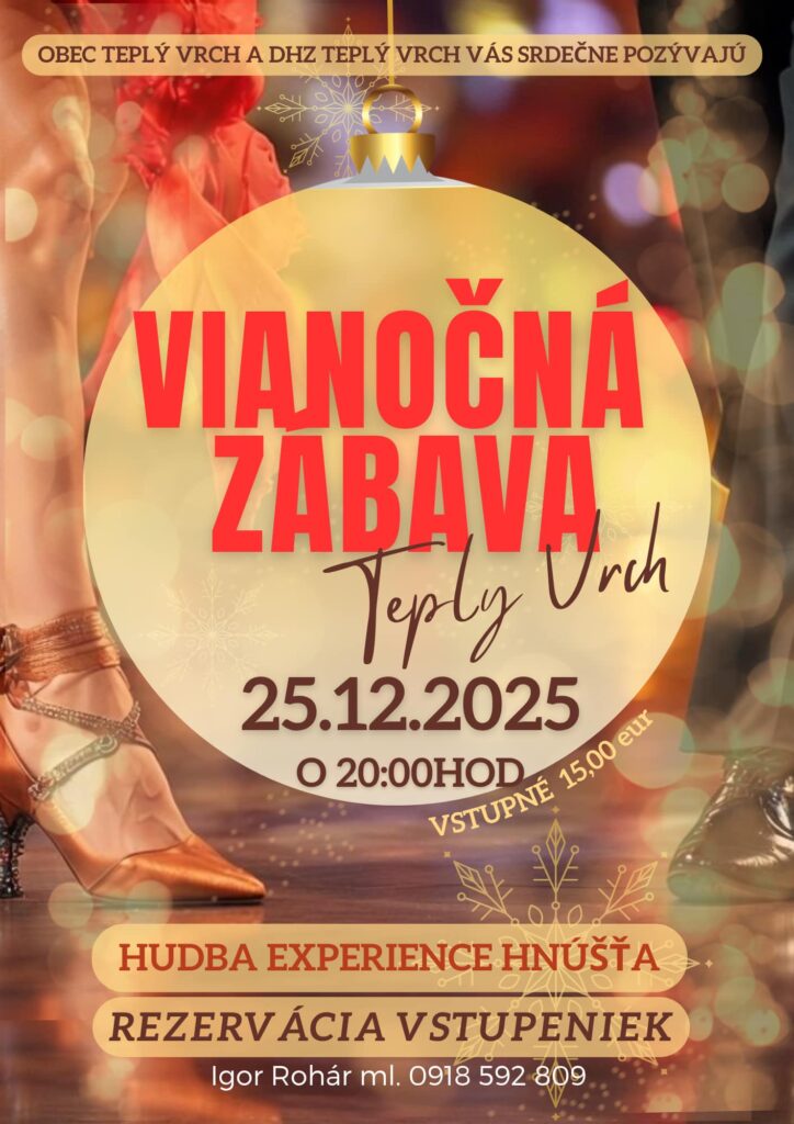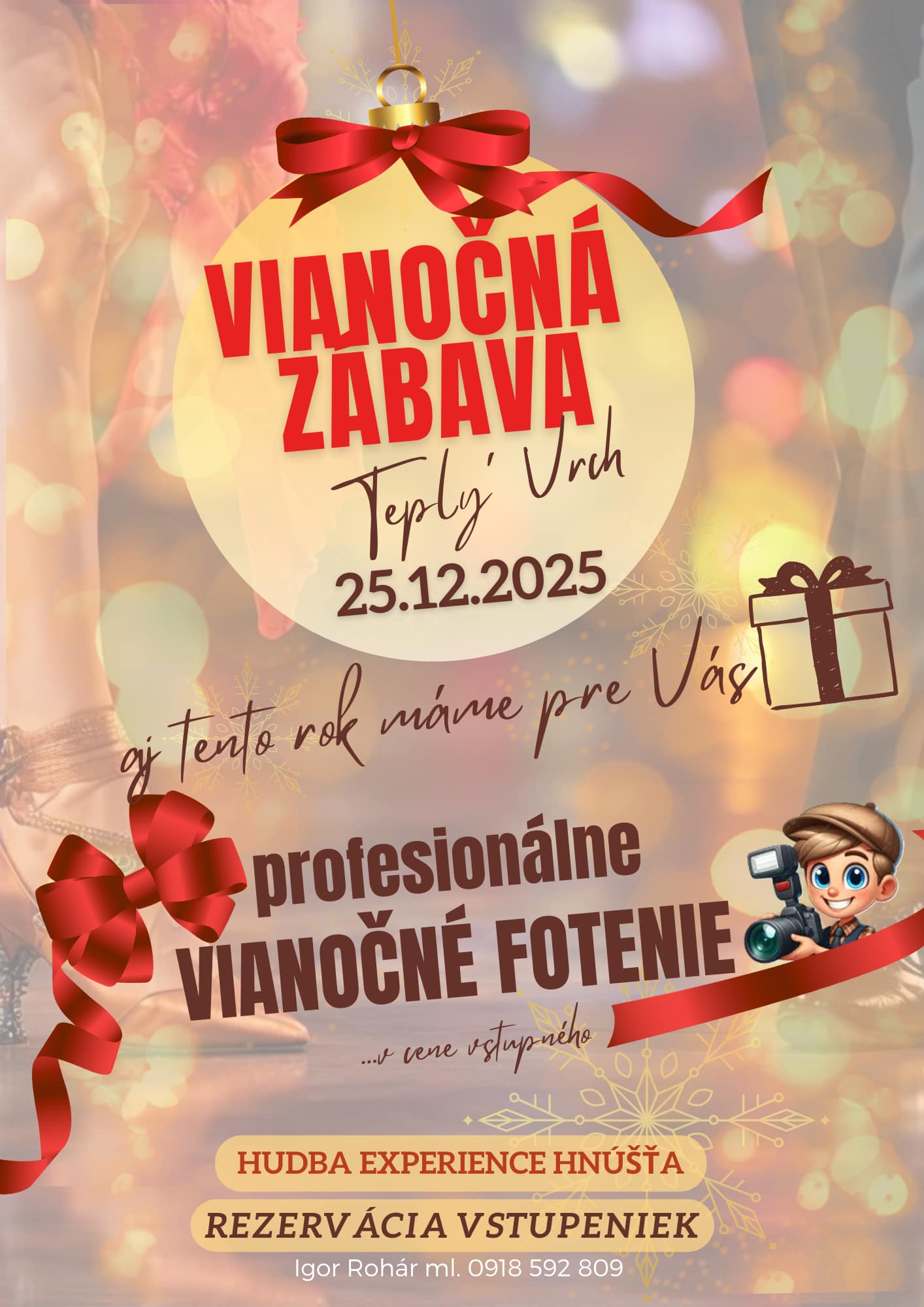 O hudobnú produkciu, ktorá roztancuje každého, sa postará HUDBA EXPERIENCE z Hnúšte. Vstupenky a rezerváciu je možné si zabezpečiť na čísle 0918 592 809. Prvý sviatok vianočný tak prinesie kombináciu tanečnej zábavy a skvelej hudby na záver roka 2025.