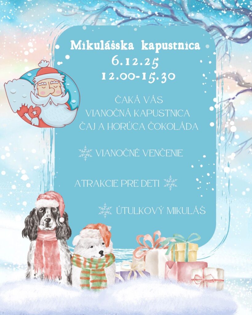 Dňa 6. decembra 2025 sa v priestoroch útulku uskutoční podujatie „Mikulášska kapustnica“ v čase od 12:00 do 15:30 hodiny. Návštevníci sa môžu tešiť na vianočnú kapustnicu, teplý čaj a horúcu čokoládu. Pripravené sú aj vianočné venčenia, ktoré umožnia návštevníkom stráviť čas so zvieratami, a samozrejme atrakcie pre deti.