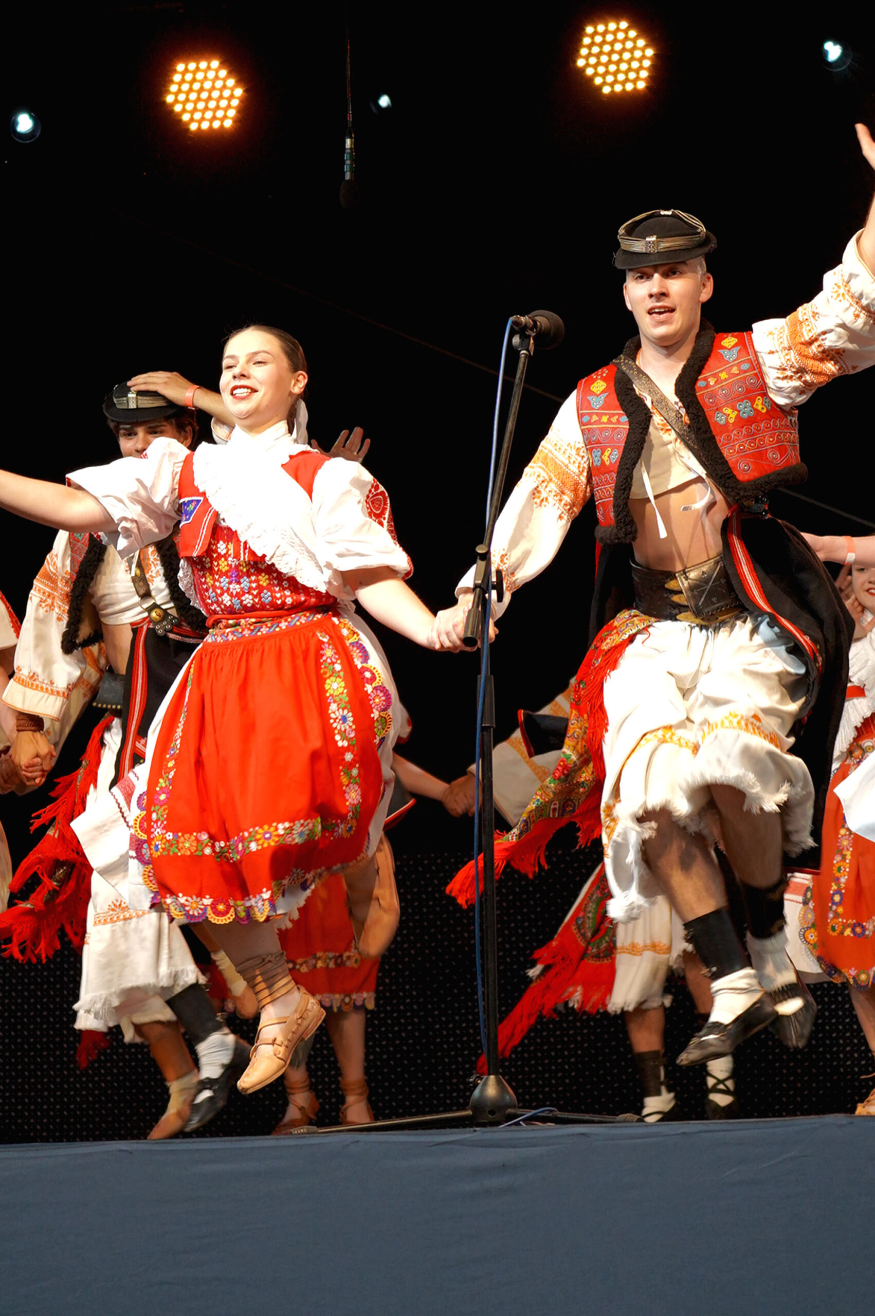Asistentky uvedenia programu Magdaléna Malatincová, Kinga Kislingerová, projekcia Milan Alberti, slovom sprevádzala Mariana Resutíková. Po nich javisko patrilo Našim jubilantom – Folklórnemu súboru Háj, DFS Hájik a DFS Hájiček z Rimavskej Soboty, ktorý autorsky pripravili Andrea a Peter Haásovci, Lenka Vilhanová, Michaela Baštáková, Peter Gecelovský. Moderátorsky program sprevádzala Katarína Pavlik Smaczna. Zahraniční hostia – súbory Klasy zo Starej Pazovej z Vojvodiny - Srbsko, Piesňový a tanečný súbor Miasta Myšlenice z Poľska, FS Skalní z Krakova z Poľska sa predstavili v programe Naši kamaráti, v réžii Jaroslava Černáka. Piatkový večer ukončilo vystúpenie hudobnej skupiny Hrdza. Sobota už od rána patrila jarmočnej nálade, tvorivým dielňam, škole spevu s FSk Lieščina z Rimavskej Soboty a školy tanca s FS Klasy z Vojvodiny.