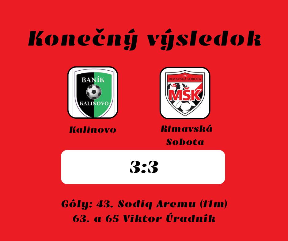 RIMAVSKÁ SOBOTA/KALINOVO – Prvý majstrovský zápas jarnej časti ligy si hráči MŠK Rimavská Sobota zahrali v nedeľu (3. marca) proti Kalinovu.